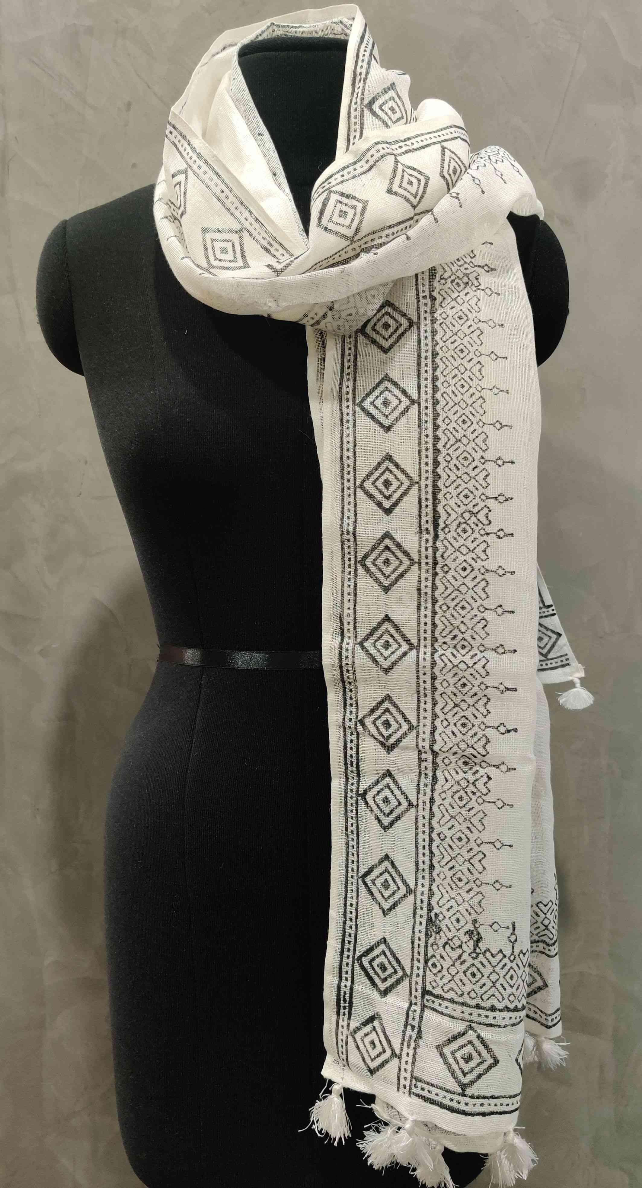 Blockprinted Linen Stoles With Tassels